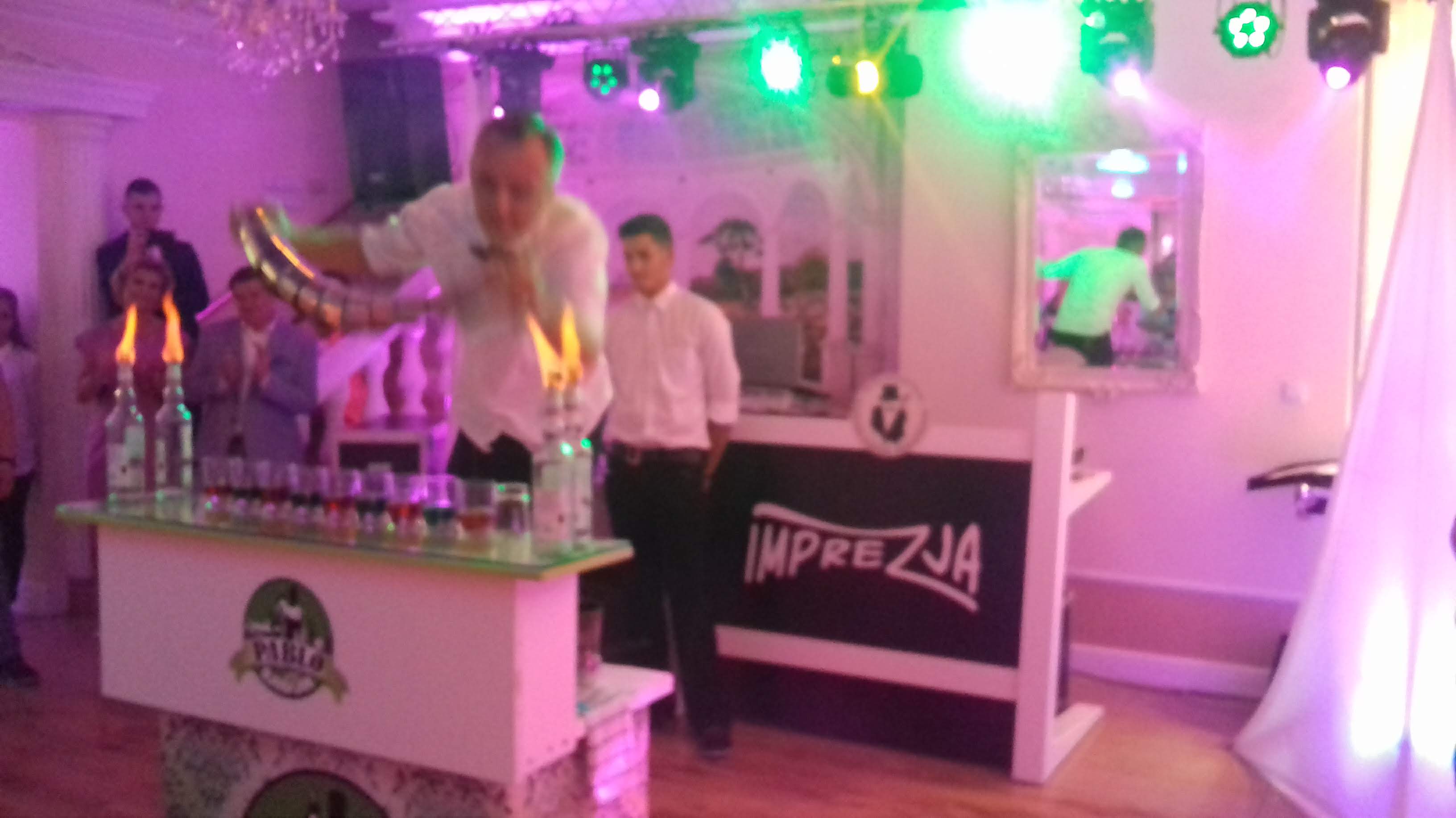 Bar pod Topolami (Rawicz) — galeria z wesela lub imprezy okolicznościowej. Na zdjęciach m.in. układ sceniczny i praca z mikrofonem; parametry techniczne ustalamy przed terminem.