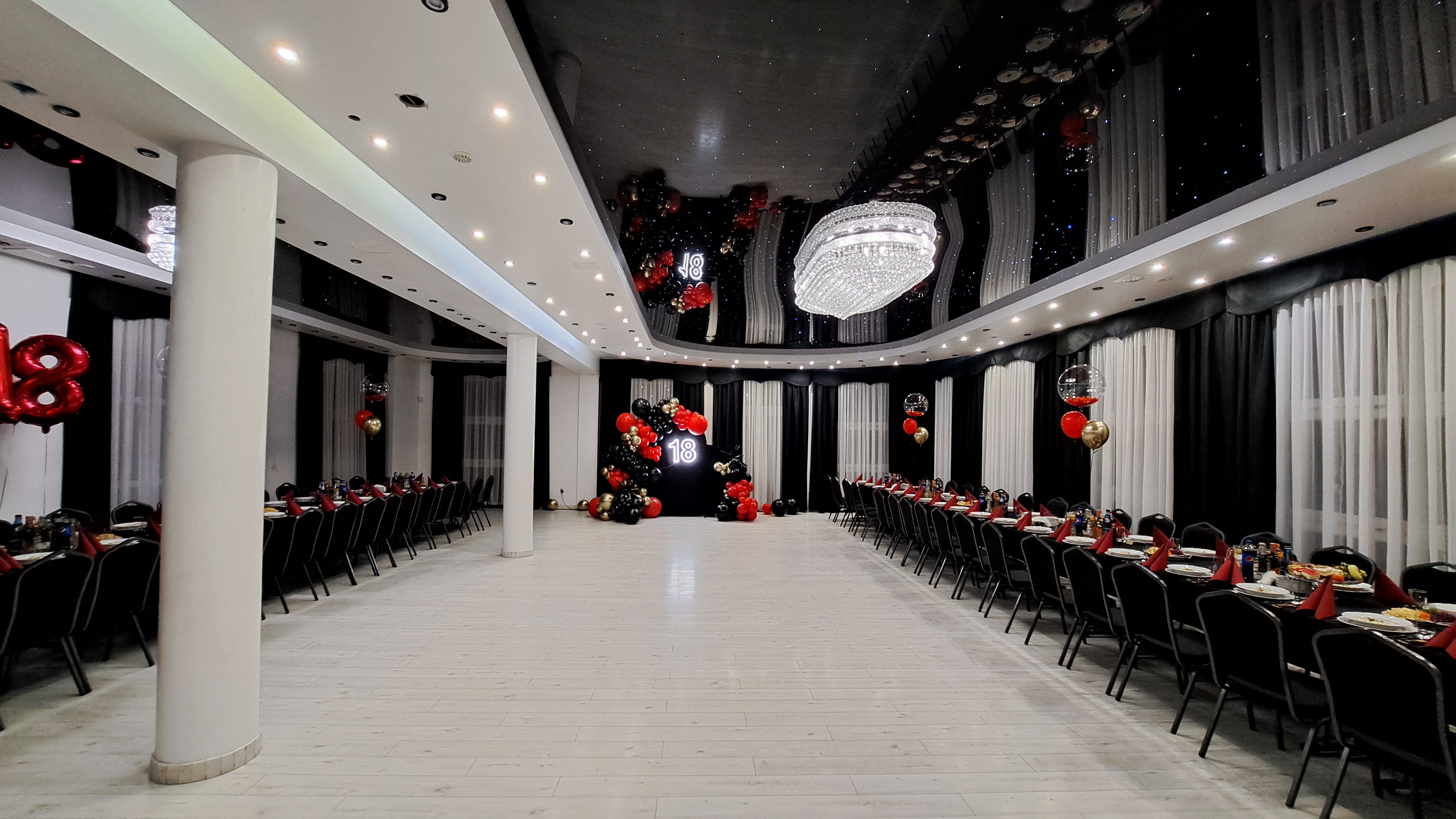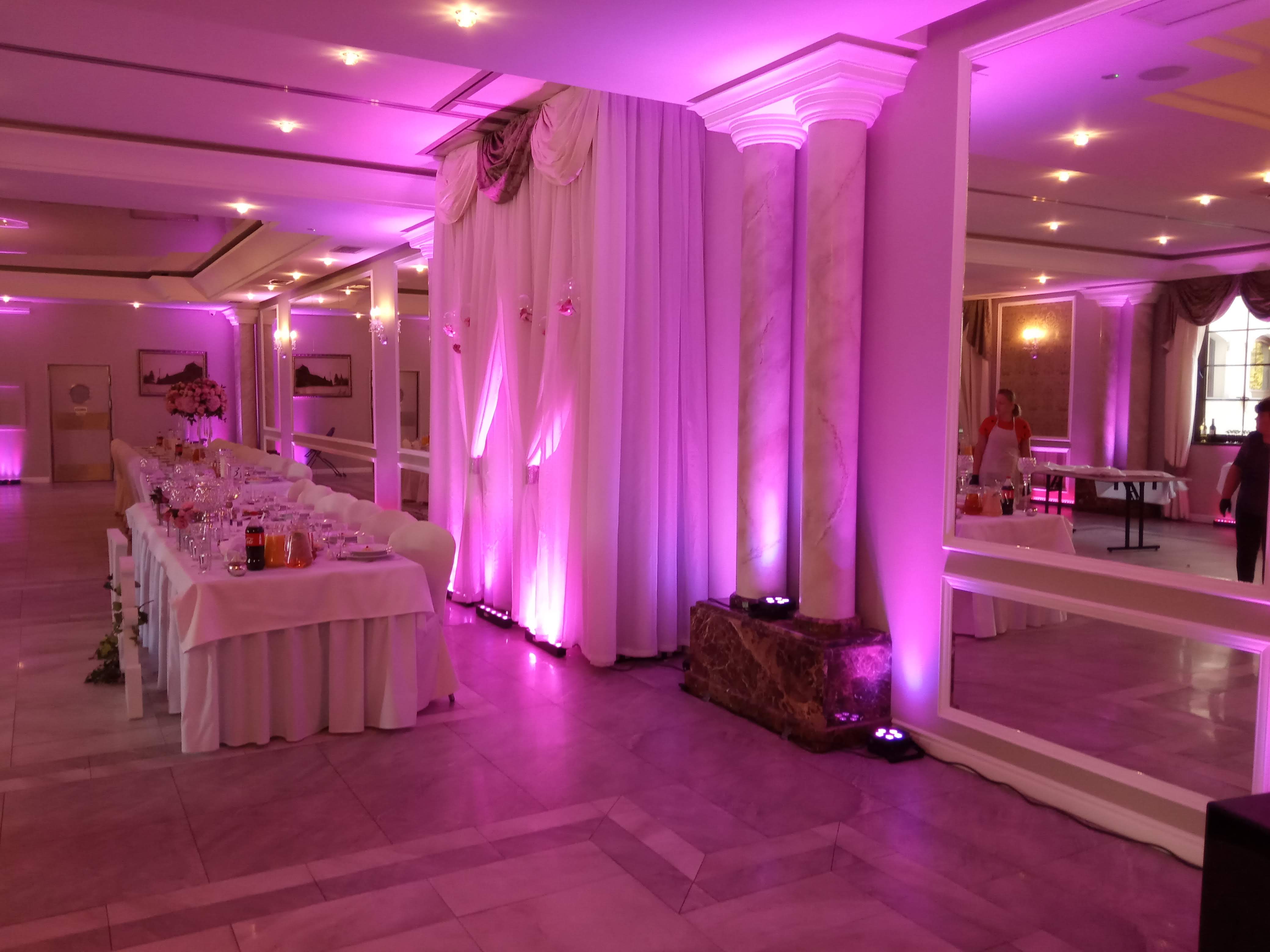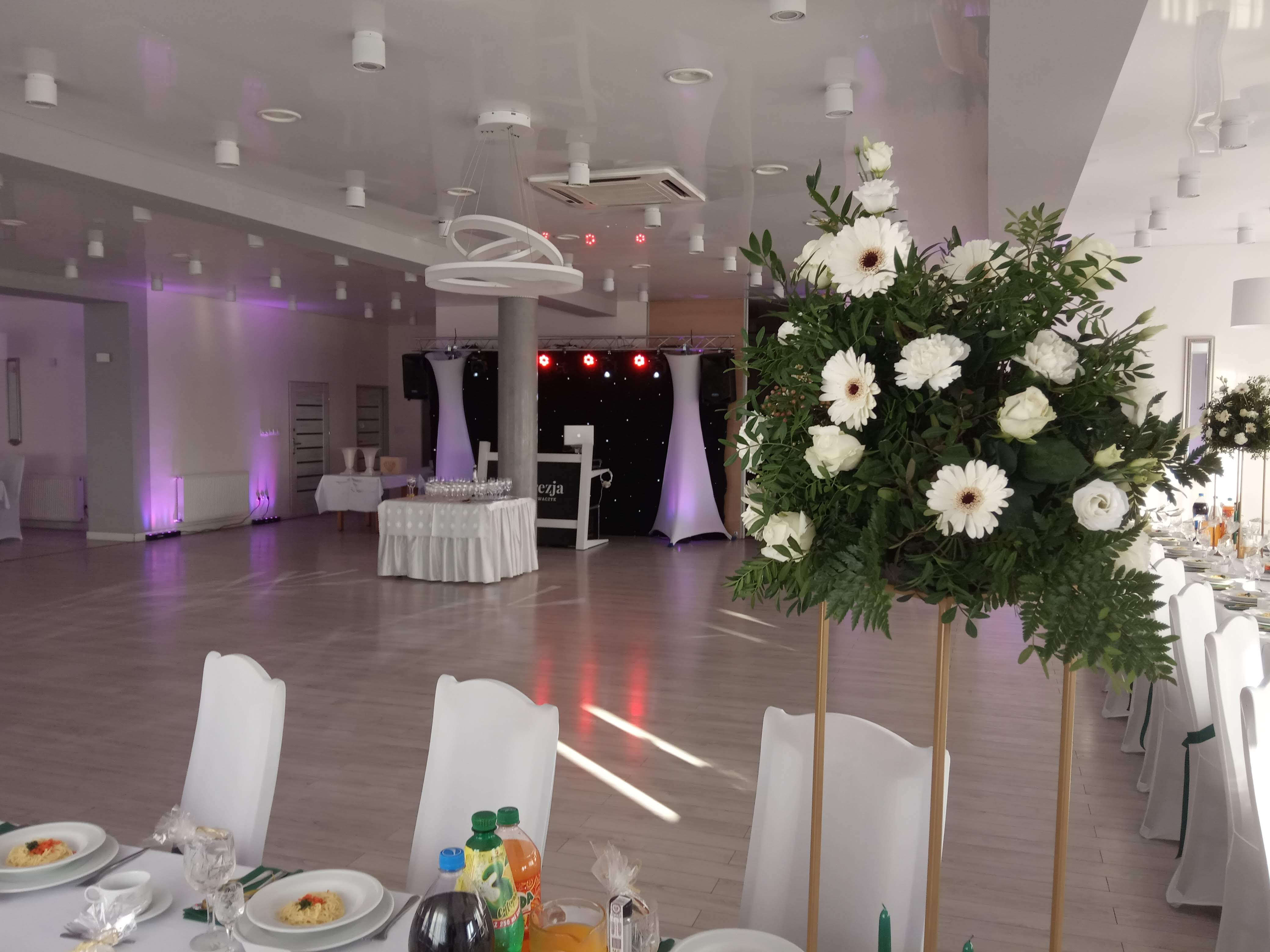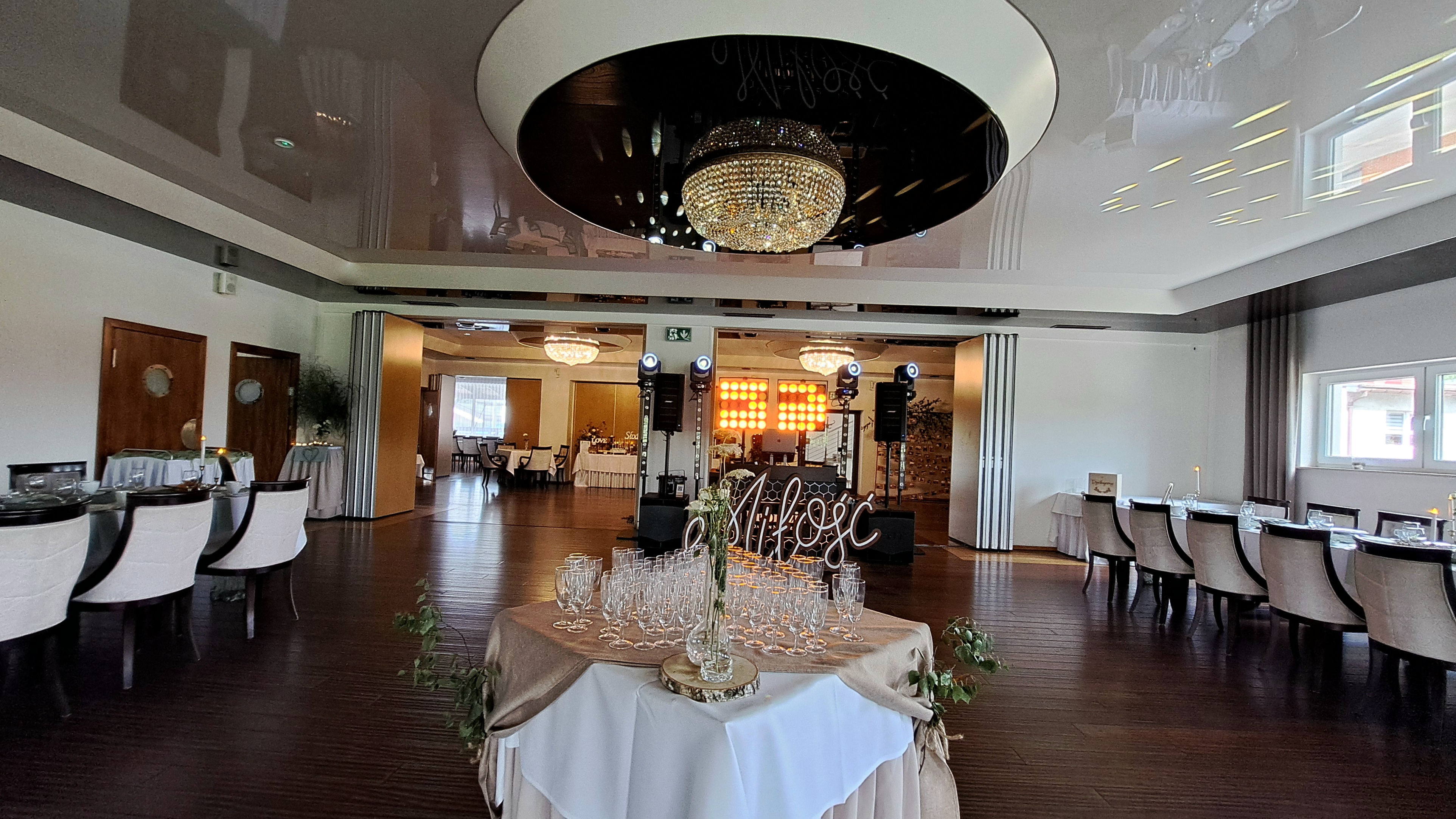 Ciekawe miejsce na weselnym szlaku. Lokal nowy i jeszcze parę rzeczy wymaga dopieszczenia 🙂 Jednak to co zastaliśmy pozytywnie nas zaskoczyło. Sala bardzo duża i ustawna. Zmieści spokojnie ponad 200 osób przy okrągłych stołach. Rada dla kolegów DJ-ów. Ze względu na długość sali zalecam zabrać bezprzewodowe nagłośnienie z linią opóźniającą. Sala ma grubo ponad 60 m długości.