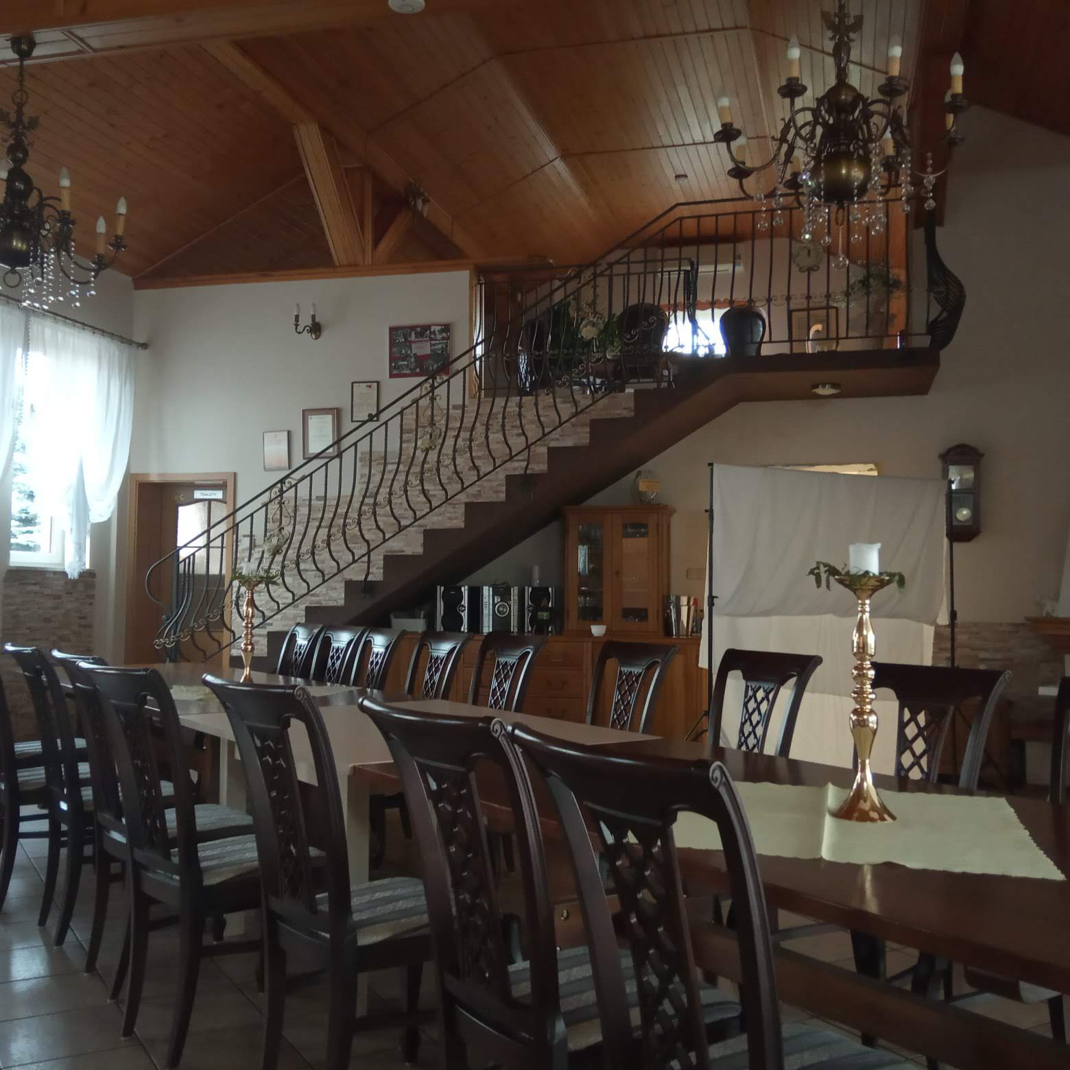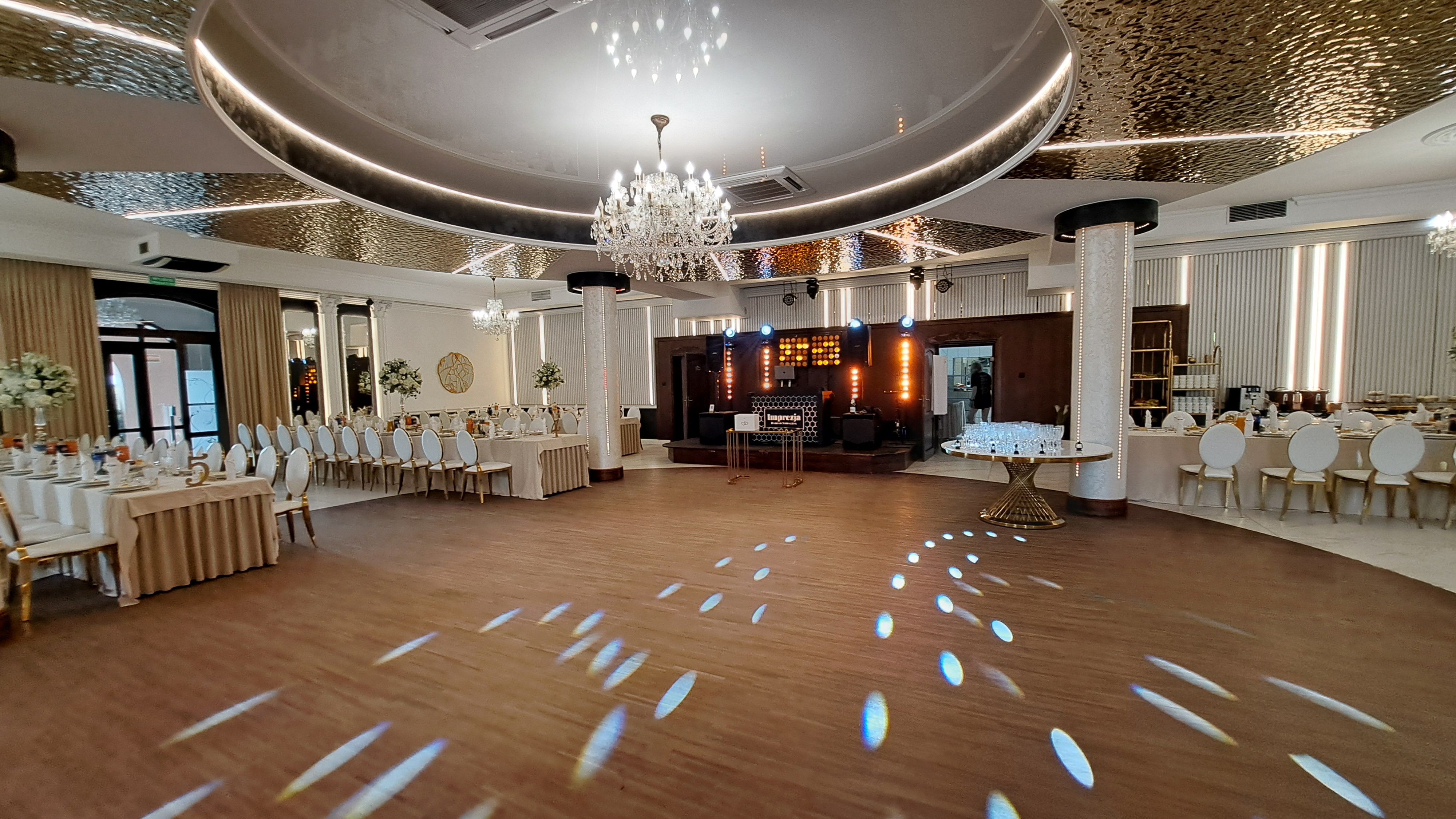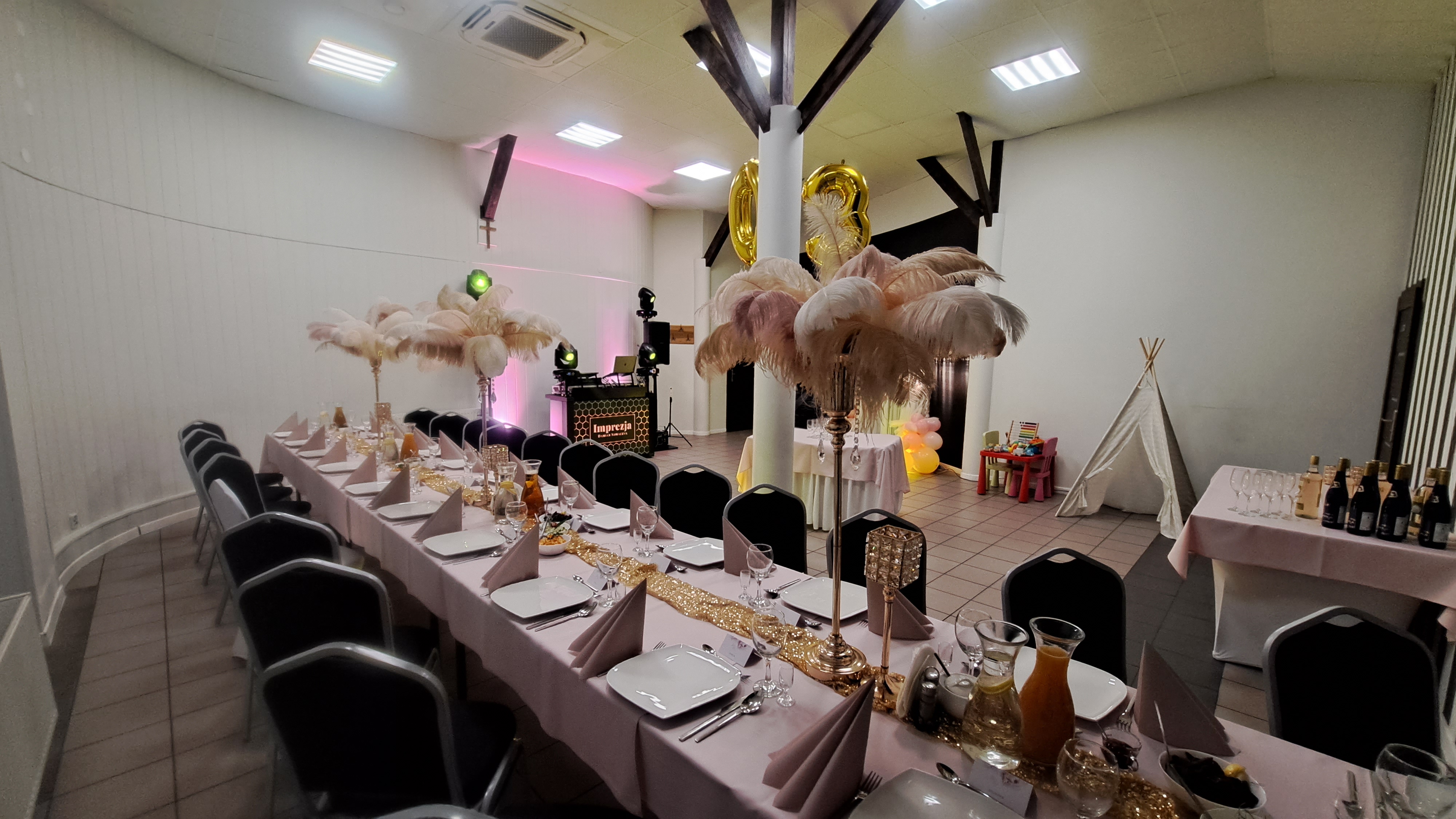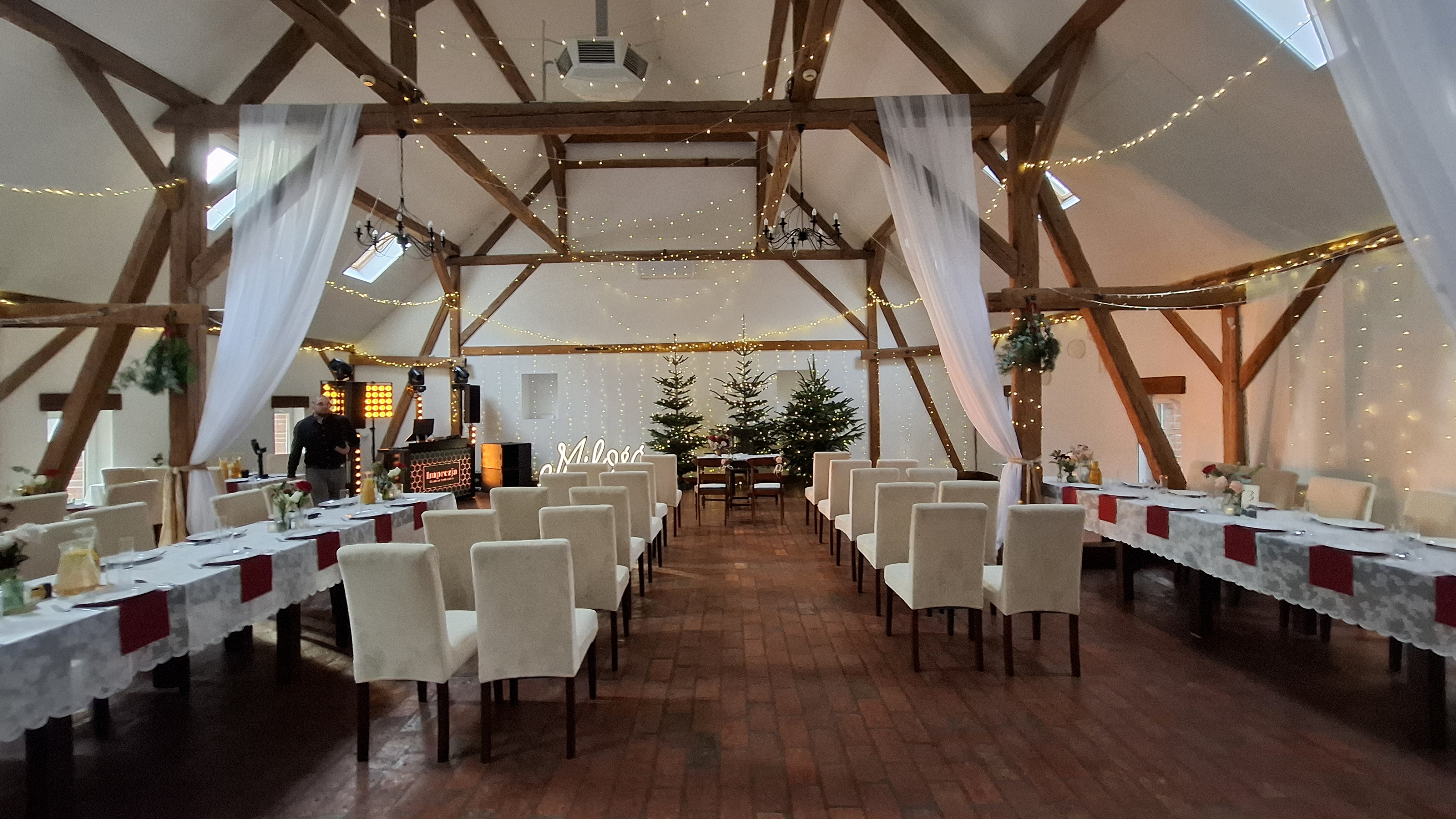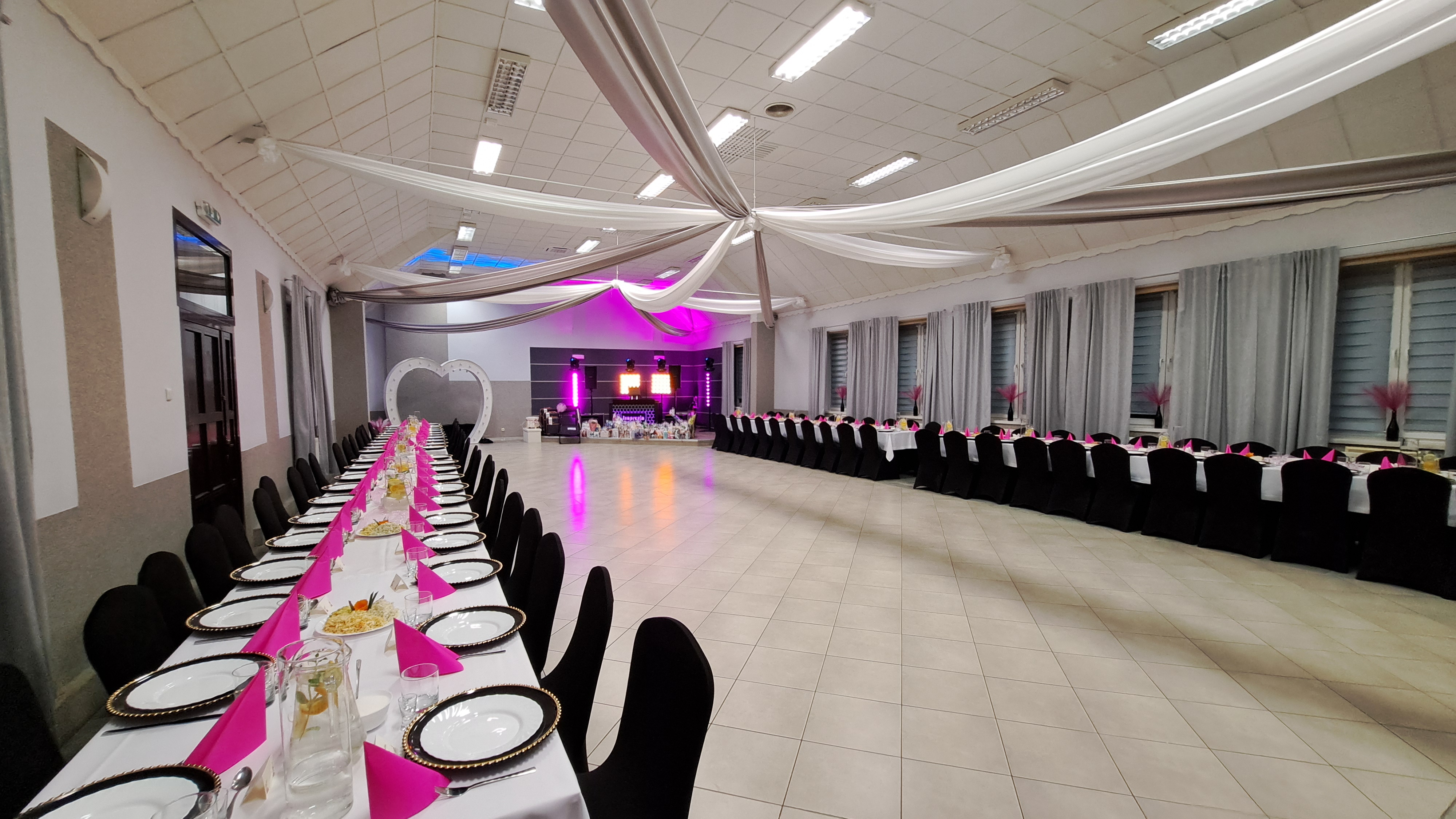 Ciekawe miejsce na weselnym szlaku. Lokal nowy i jeszcze parę rzeczy wymaga dopieszczenia 🙂 Jednak to co zastaliśmy pozytywnie nas zaskoczyło. Sala bardzo duża i ustawna. Zmieści spokojnie ponad 200 osób przy okrągłych stołach. Rada dla kolegów DJ-ów. Ze względu na długość sali zalecam zabrać bezprzewodowe nagłośnienie z linią opóźniającą. Sala ma grubo ponad 60 m długości.