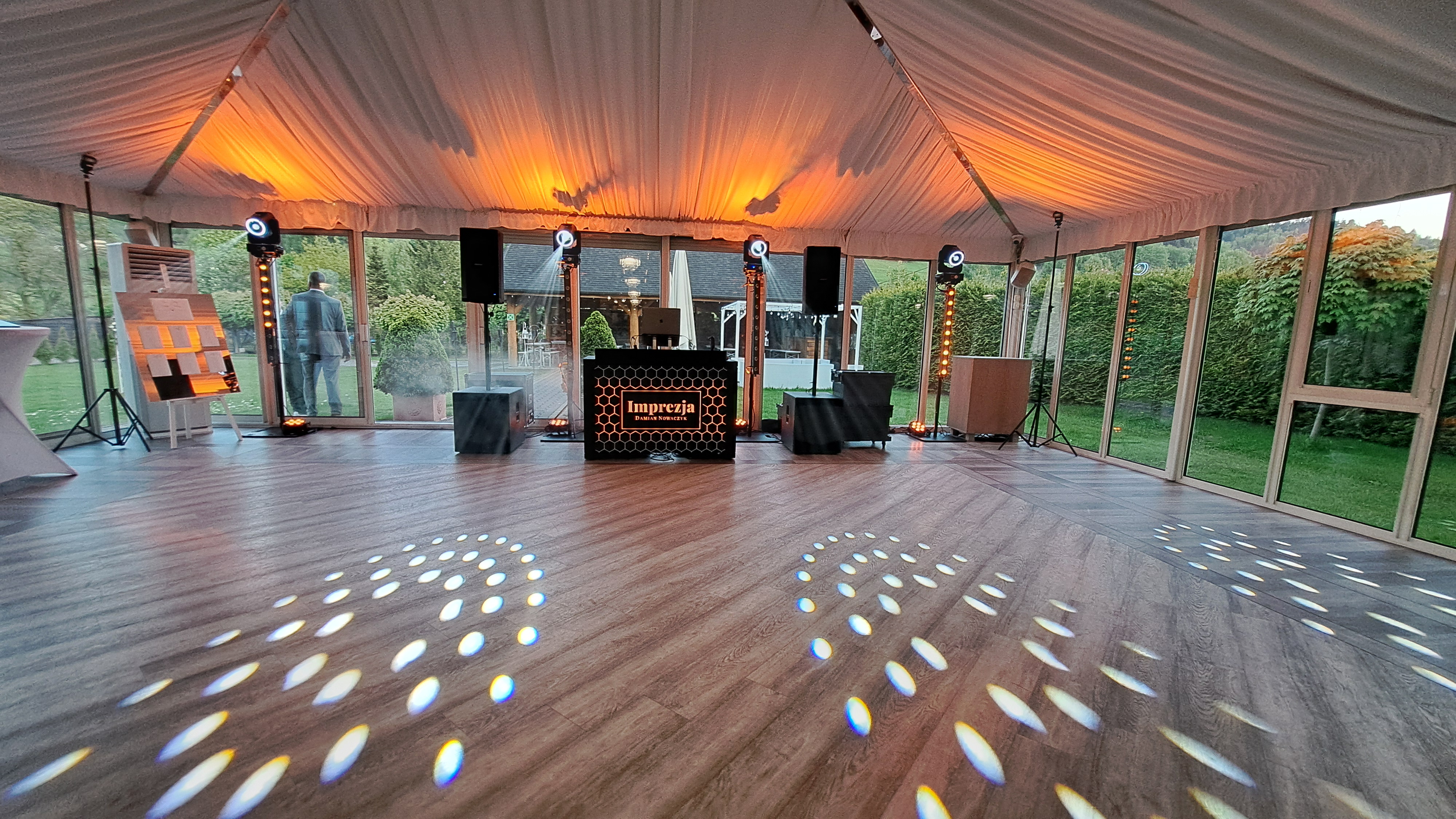 ORANŻERIA (DOBRZYCA). Wybrane ujęcia z realizacji: światło, zestaw nagłośnienia i praca na sali. Repertuar i scenariusz uzgadniamy z organizatorami przed wydarzeniem.